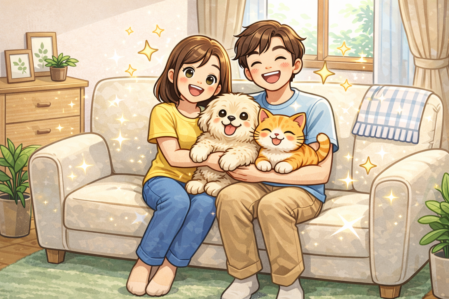침대 위에서 함께 눕고, 소파에 같이 앉는 시간이 자연스럽습니다. 🐶🐱