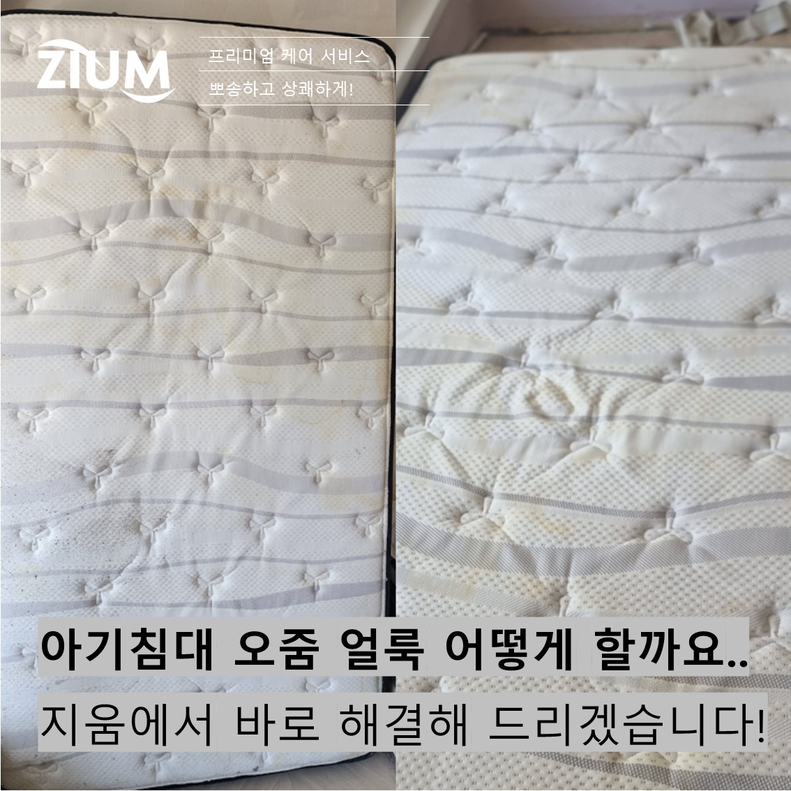 3. "아기에게 가장 깨끗하고 안전한 잠자리를!" – 지움(ZIUM)의 아기 매트리스 오줌 얼룩 전문 케어