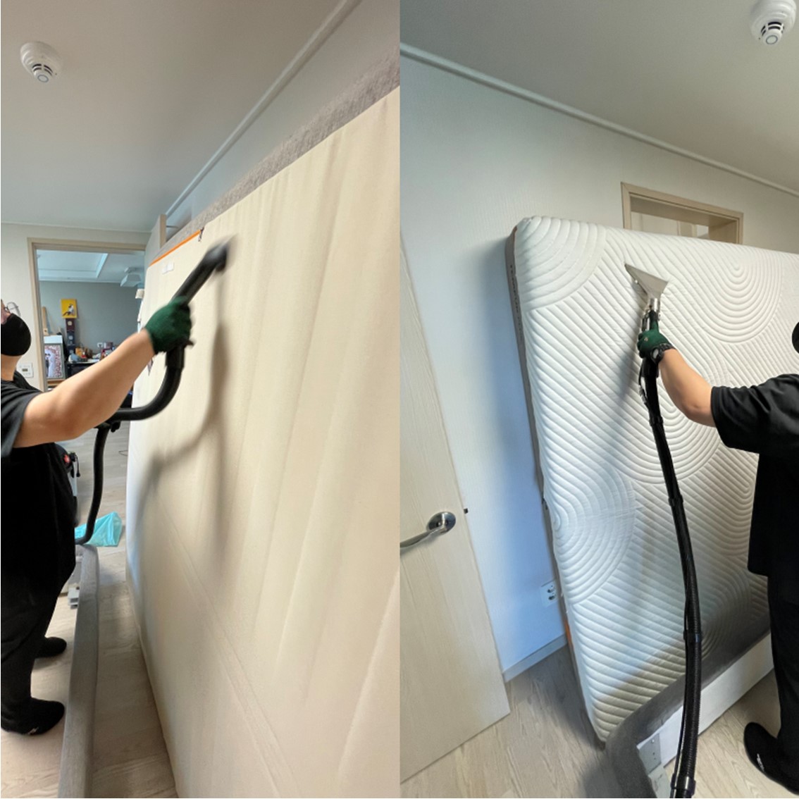 - ② 습식 청소의 위험성: 얼룩이나 냄새 때문에 셀프로 습식 청소를 시도하는 경우도 있지만, 두꺼운 매트리스는 가정에서 내부까지 완벽하게 건조시키기가 매우 어렵습니다. 덜 마른 매트리스는 곰팡이와 세균의 번식지가 되어 청소 전보다 훨씬 심각한 알레르겐 덩어리가 될 위험이 있습니다. 이 경우 간지러움은 더욱 심해지고, 호흡기 건강에도 치명적일 수 있습니다.