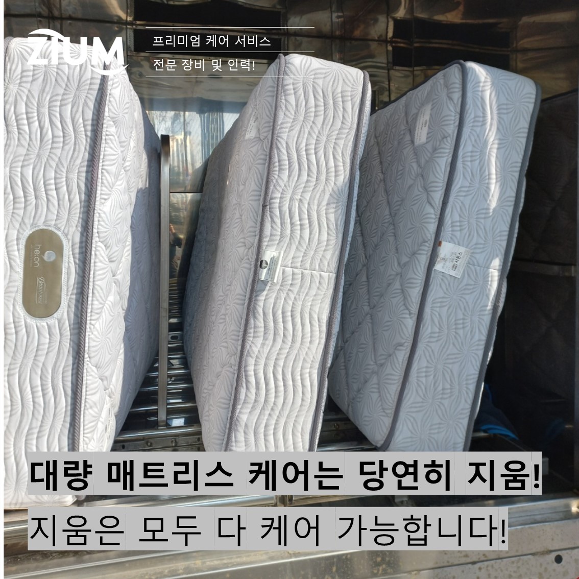| 관공서, 수련원, 연수원 등 대량 매트리스 케어는 지움(ZIUM)에 맡기세요! (0) | 2026.03.18 |