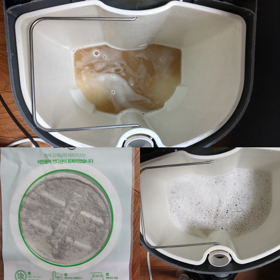 늦게 신청하면예약 길어집니다~ 강아지가 매트리스에 엄청 크게 오줌쌌는데처음하고 비교도 안되게 없어져서대만족이네요 일단 먼지가 엄청 나왔어요!실제로 보여주셔서 좋았습니다 원래 얼