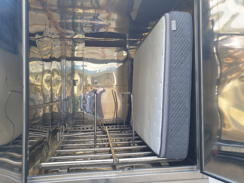 매트리스를 고객님 집 앞에 대기 중인 건조 차량에 직접 넣고 건조합니다. 보통 타 업체는