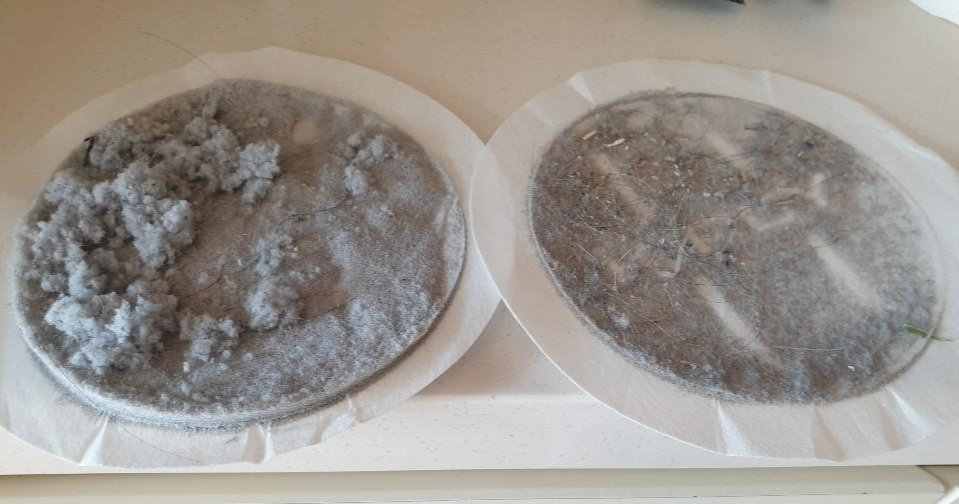 건식 청소 결과입니다. 눈에 보이지는 않지만, 먼지뿐만 아니라 각종 진드기