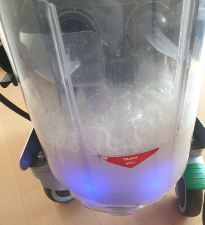 습식 청소를 하면서 사용했던 물은 최대한 흡입해서 다시 기계로