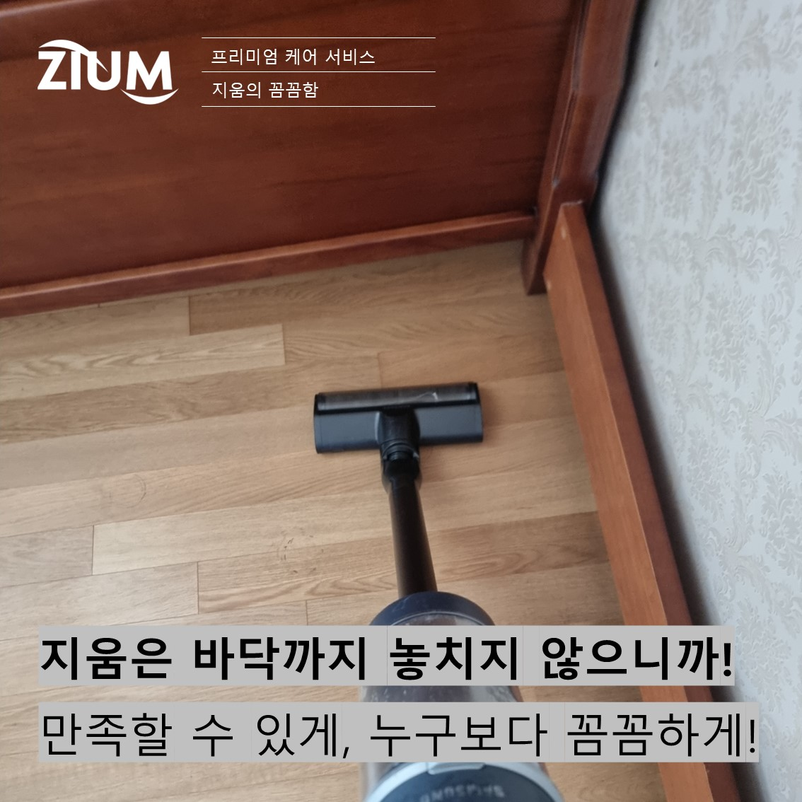 진정한 위생 관리는 눈에 보이지 않는 곳에서 빛을 발합니다. 지움(ZIUM)은 침대의 겉모습뿐만 아니라, 가장 깊숙하고 어두운 부분까지 꼼꼼하고 성실하게 케어하는 것을 원칙으로 합니다. 고객님이 보지 못하는 곳까지 정직하게 청소하여, 안심하고 잠들 수 있는 깨끗한 공간을 제공하는 것이 지움의 약속입니다.