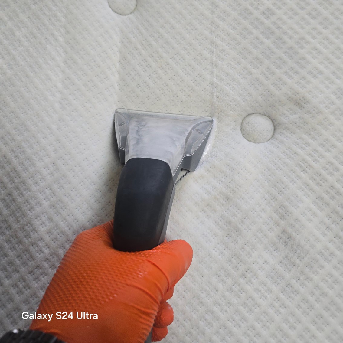 - 2단계: 전문 습식 청소: 땀 자국, 얼룩, 오줌 등 액체성 오염원과 찌든 때를 제거하기 위해 매트리스 소재와 오염 종류에 맞는 친환경 전용 세제를 사용합니다. 특수 장비로 세제를 분사하고 오염물을 불린 뒤, 강력하게 흡입하여 오염수를 추출합니다. 이때 시커먼 '더러운 물'이 나오며 고객님들을 놀라게 합니다.