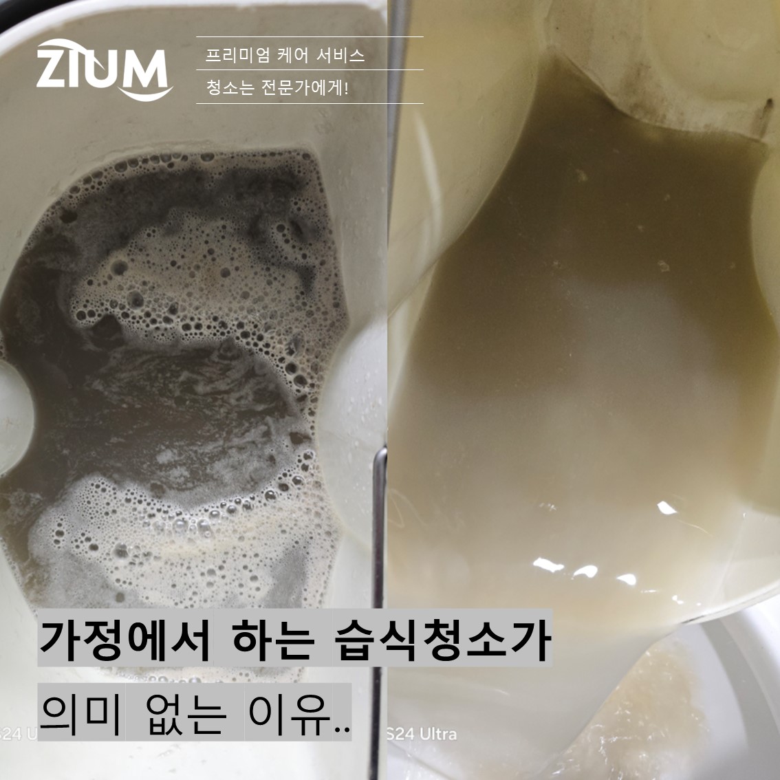 가정에서 직접 하는 습식 청소는 노력에 비해 불완전한 결과를 가져오며, 오히려 가구와 가족의 건강에 해가 될 수 있습니다. 이제 소중한 가구와 가족의 건강을 위해, 청소는 지움(ZIUM) 전문가에게 맡겨야 할 때입니다.
