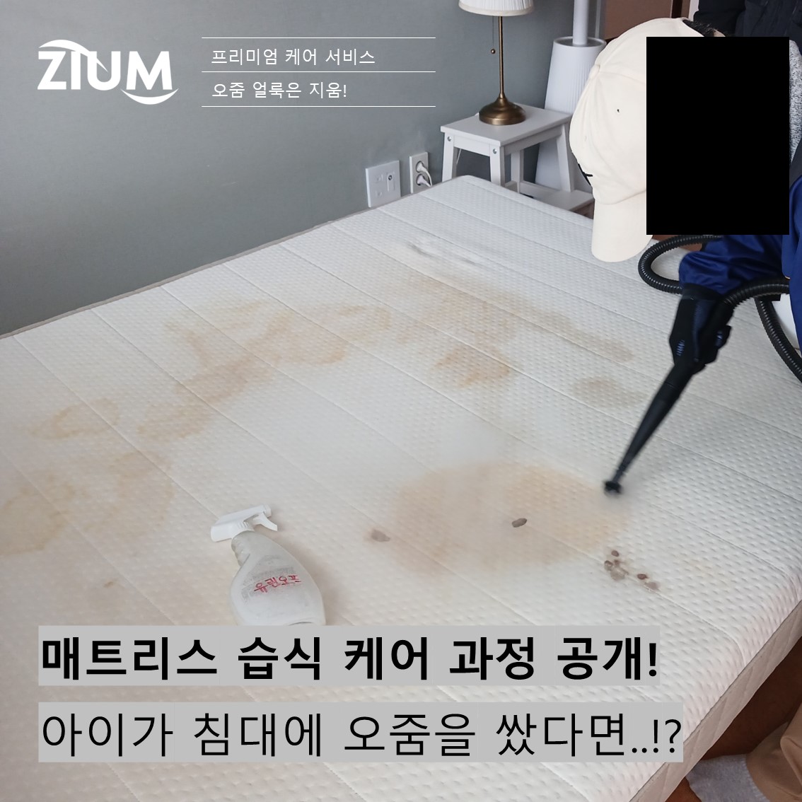 #지움 #ZIUM #매트리스청소 #습식케어 #아기침대청소 #오줌얼룩제거 #친환경세제 #고온건조 #위생관리 #건강한잠자리